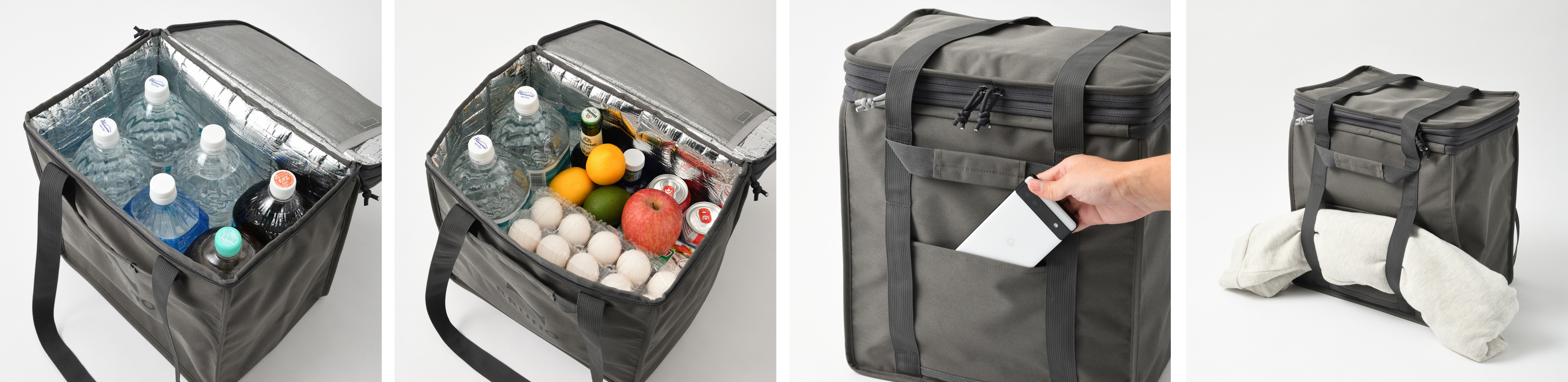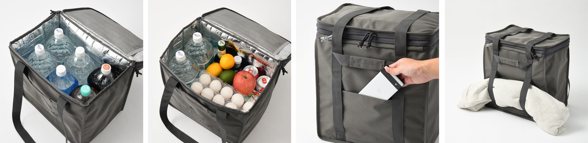 ファスナーひとつで容量を拡張し、荷物を上下で仕分けられる革新的な“拡張式保冷バッグ”に加え、大容量ながらスマートに常備できる“ポケッタブルタイプ(2種)”が新登場。