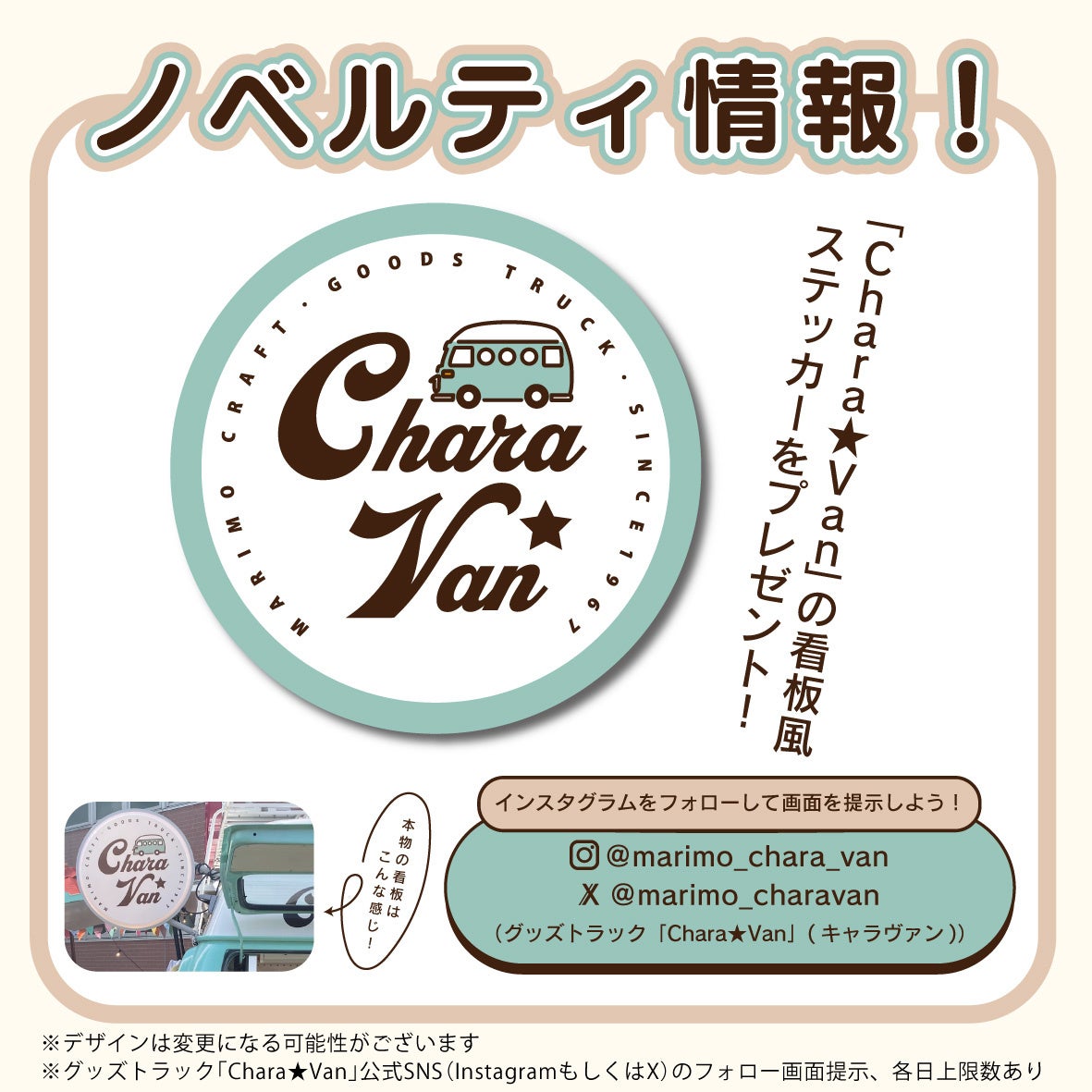 グッズトラック「Chara★Van」(キャラヴァン)の公式SNS(X/Instagram)のフォロー画面をご提示いただいた方に、「ノベルティステッカー」を1点プレゼントいたします。