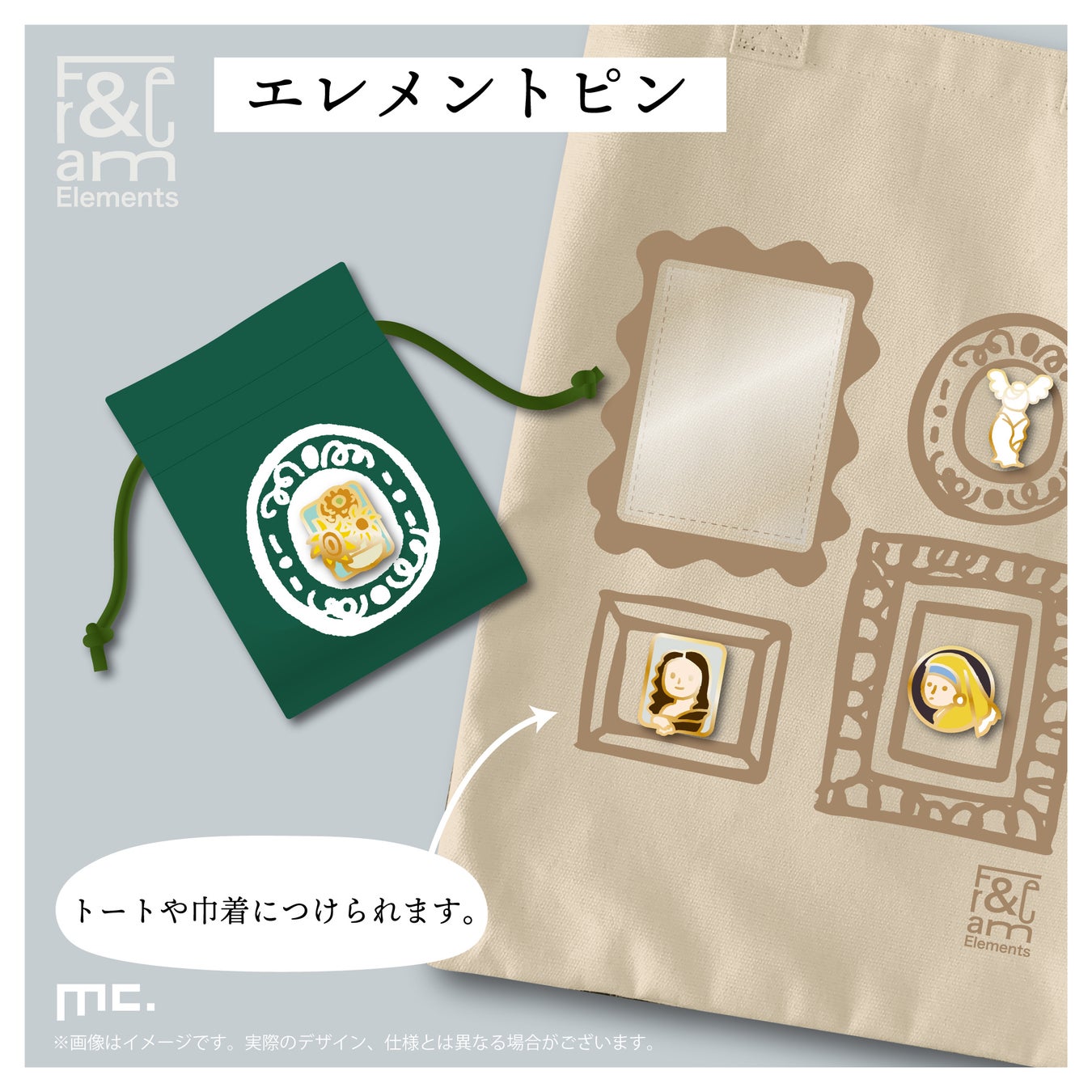 お気に入りの要素=エレメントをモチーフ化したピンバッジです。お気に入りの絵、力をもらえる絵、何だか気になってしまう絵…それはすべて自分を形作るエレメンツ。額に飾ればあなただけの美術館に!