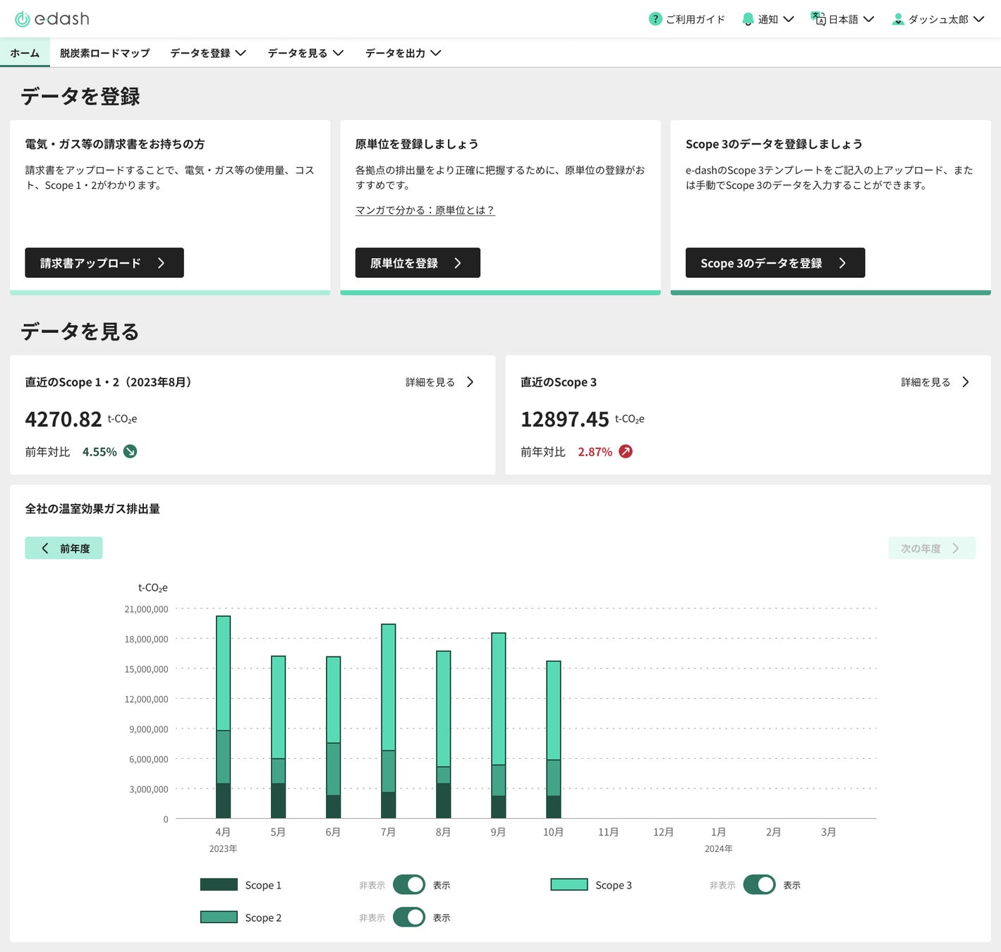 CO2排出量可視化クラウドサービス「e-dash」がUIを全面リニューアル