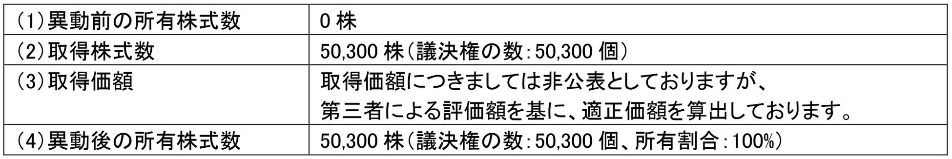 (注)子会社化の完了に伴い、本日付で佐藤甲治が代表取締役社長に就任し、取締役および監査役についても全員が新たに就任しております。