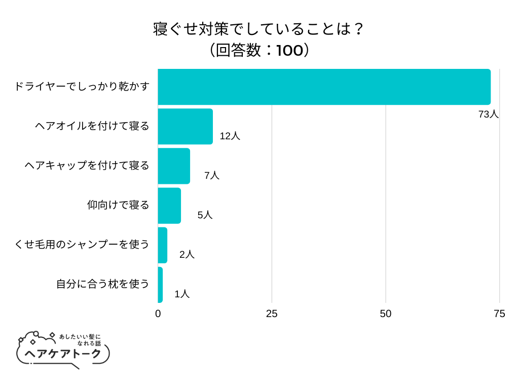 しっかり乾かすと寝ぐせが付きにくいと実感しているから、くせ毛なので髪が濡れたまま寝るとよりくせが出てしまうからという意見が多くありました。