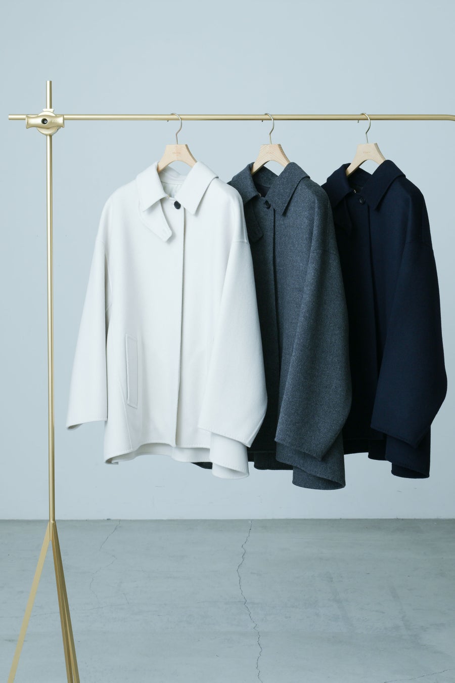 昨今の暖冬に伴ったショート丈コートの豊富なバリエーションの中でも、万能に合わせていただける一着です。