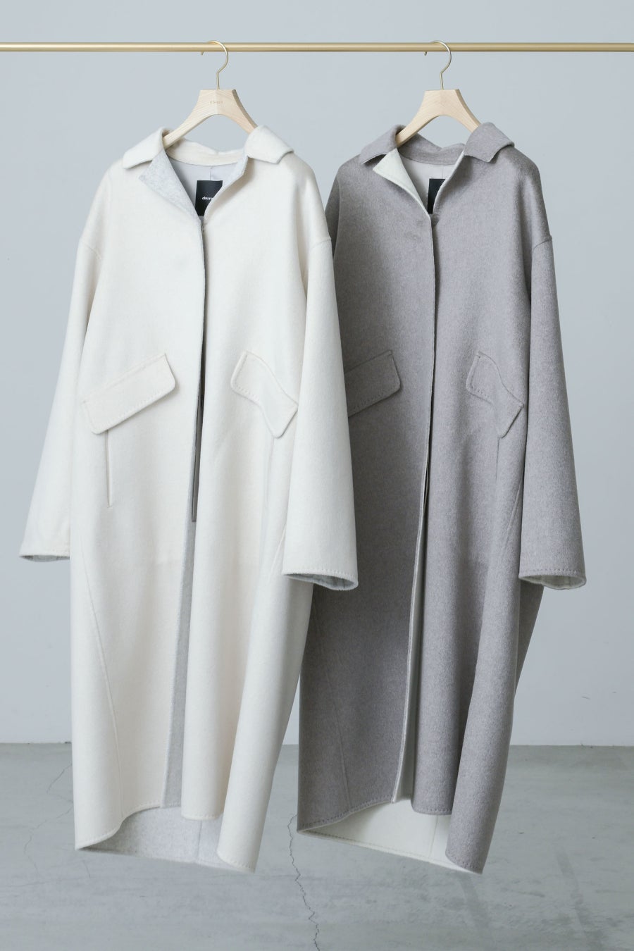毎年ご好評をいただいている〈カシミアリバーコート〉の両面ビーバー仕上げによる毛艶と柔らかさは、通常の片面仕立てとは一線を画す仕上がりです。