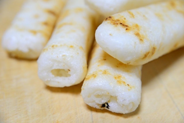 きりたんぽとは、炊いたご飯を潰して秋田杉の串に巻き付け焼いた秋田の郷土料理です。