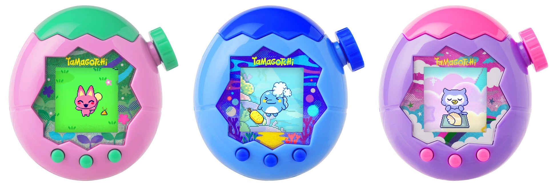 Tamagotchi Paradise - Pink Land/Blue Water/Purple Sky 価格:各6,380円 発売中※ ⒸBANDAI |