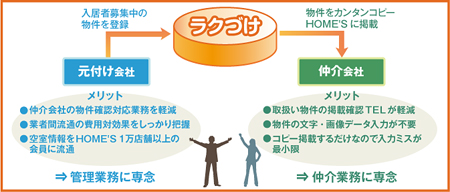 『HOME'S』の法人会員向けの事業者間物件情報流通サービス「ラクづけ」にて、