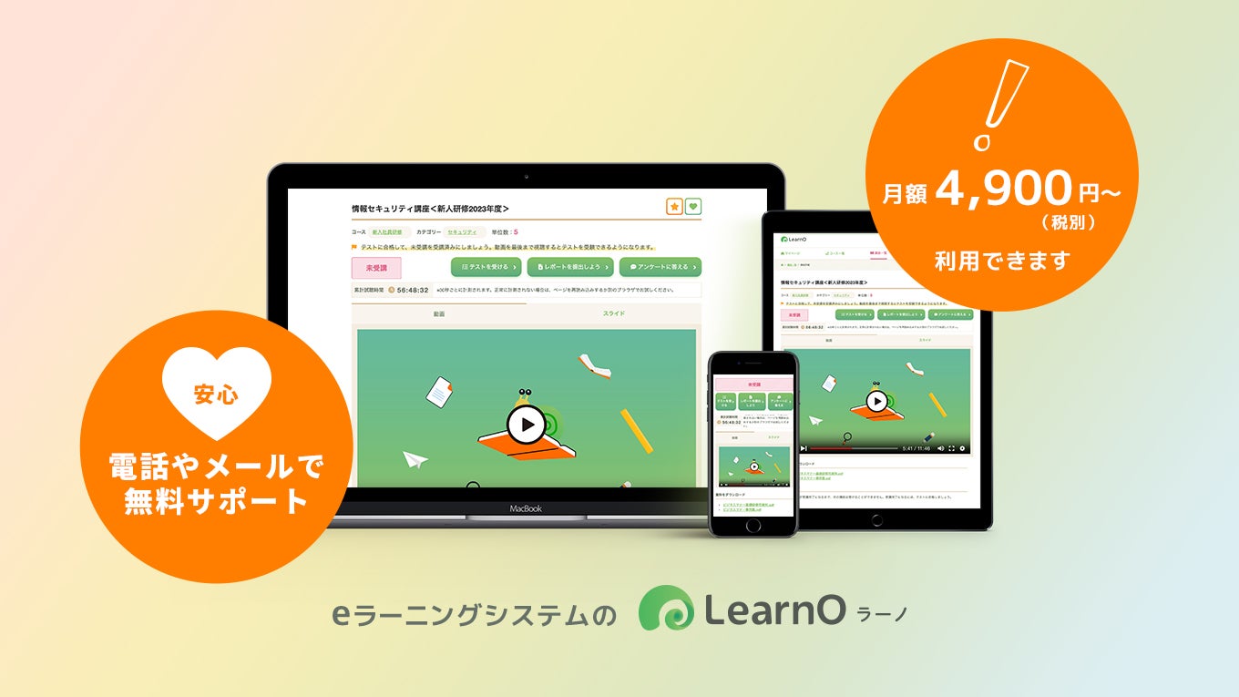 最短1か月から・月額料金25%OFFで利用可能!コンプライアンス研修をeラーニングシステム「LearnO(ラーノ)」で実現
