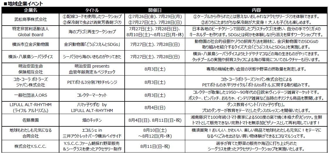 三井アウトレットパーク 横浜ベイサイドと地域関係者による環境保全イベント「エコWEEK」がパワーアップ!夏休みの宿題にぴったりなイベントも♪学べる!楽しめる!「エコWEEK」開催