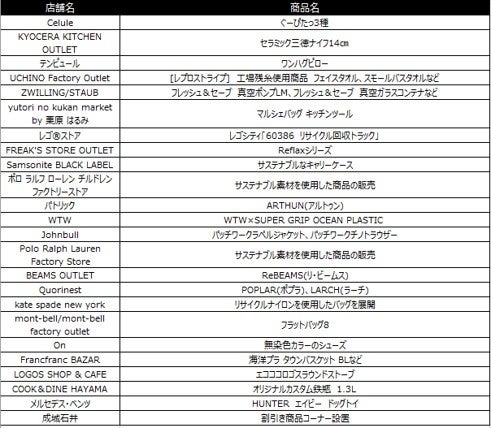 【エコ・エシカル関連商品 展開店舗・商品一覧】