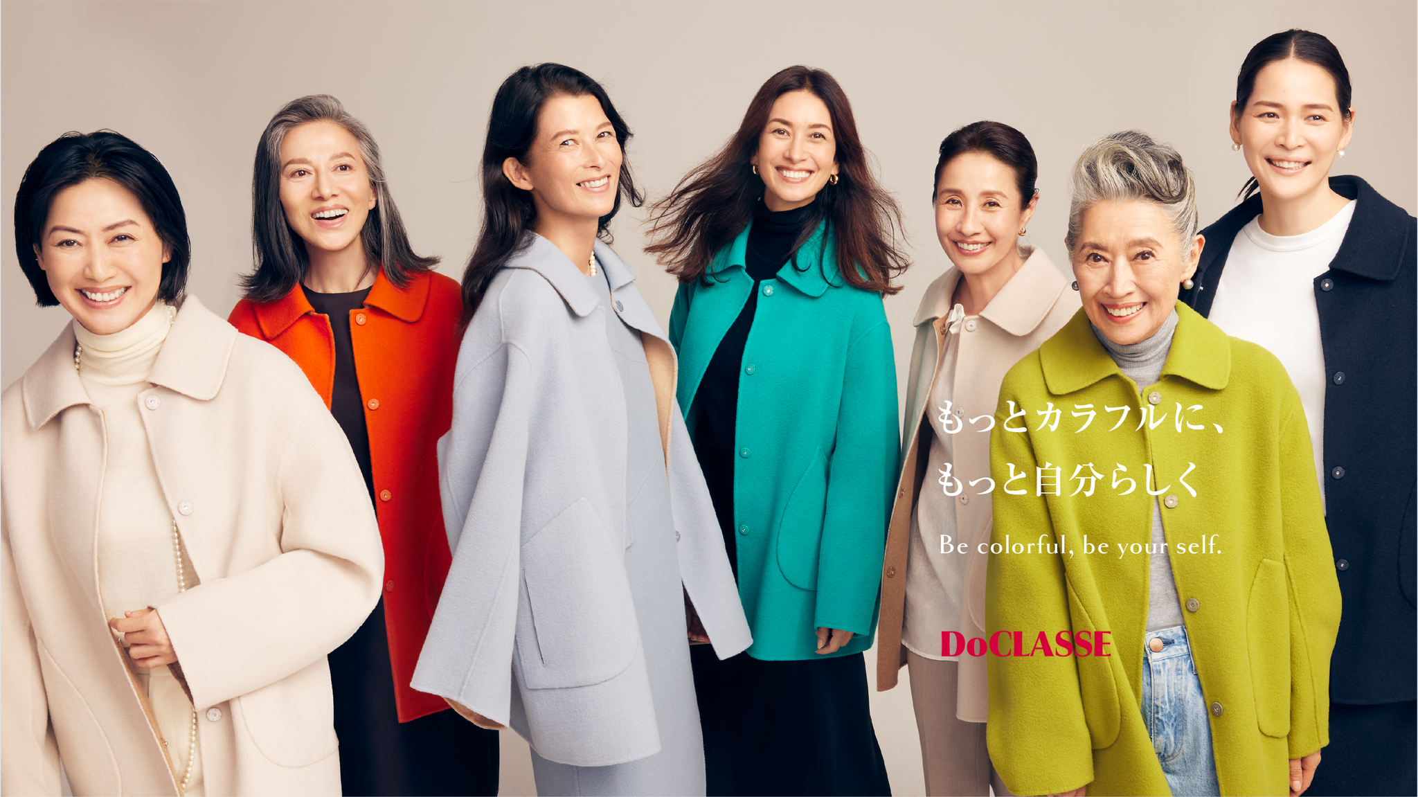 「もっとカラフルに、もっと自分らしく」カラーコートを纏った個性あふれる7人のMUSEが出演するDoCLASSEの新CMが放映スタート!