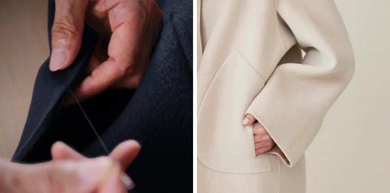 二重織りの生地の端を割り、膨大な時間をかけて手でかがっていく――。