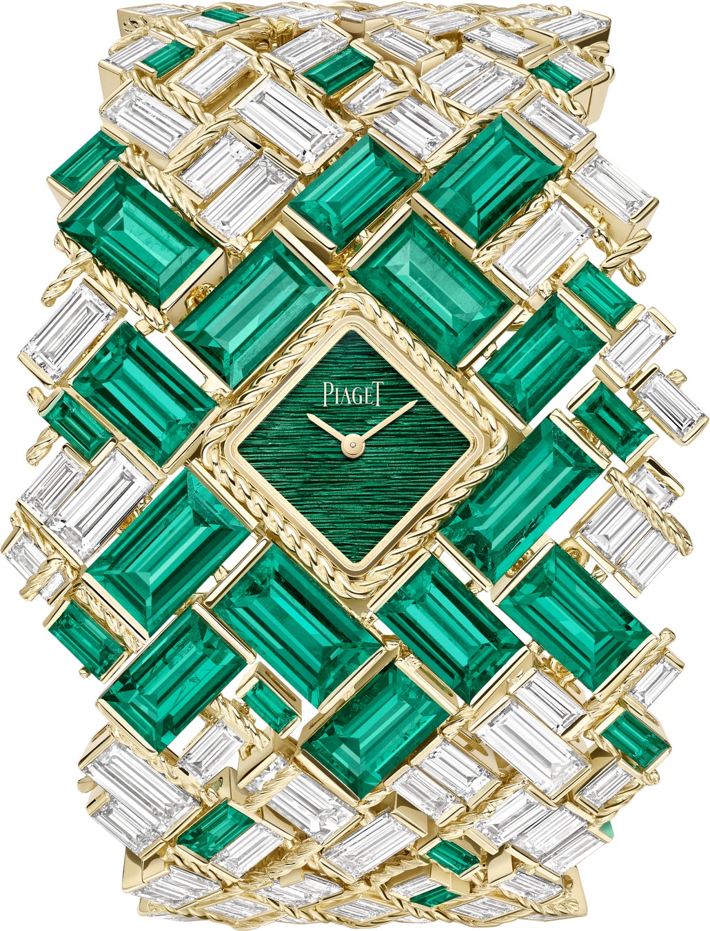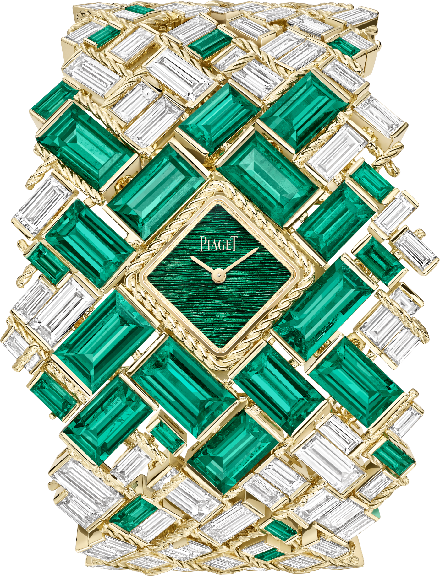 ピアジェは創業150周年を記念し、名作ハイジュエリーコレクション「エッセンス・オブ・エクストラレガンザ」を発表。その中の2つのタイムピースが、今回初めて展示されます。コロンビア産のバゲットカット・エメラルド約40個を発掘するのは並大抵のことではないですが、この偉業は、26.11カラットのエメラルドをあしらった特別なウォッチという形で結実しました。エッセンス・オブ・エクストラレガンザ」は、ゴールドを主役に、宝石を真のスタイル エレメントとしている。これらの作品を身につける女性や男性たちを、際立った個性を求める自由なスピリットとして際立たせます。