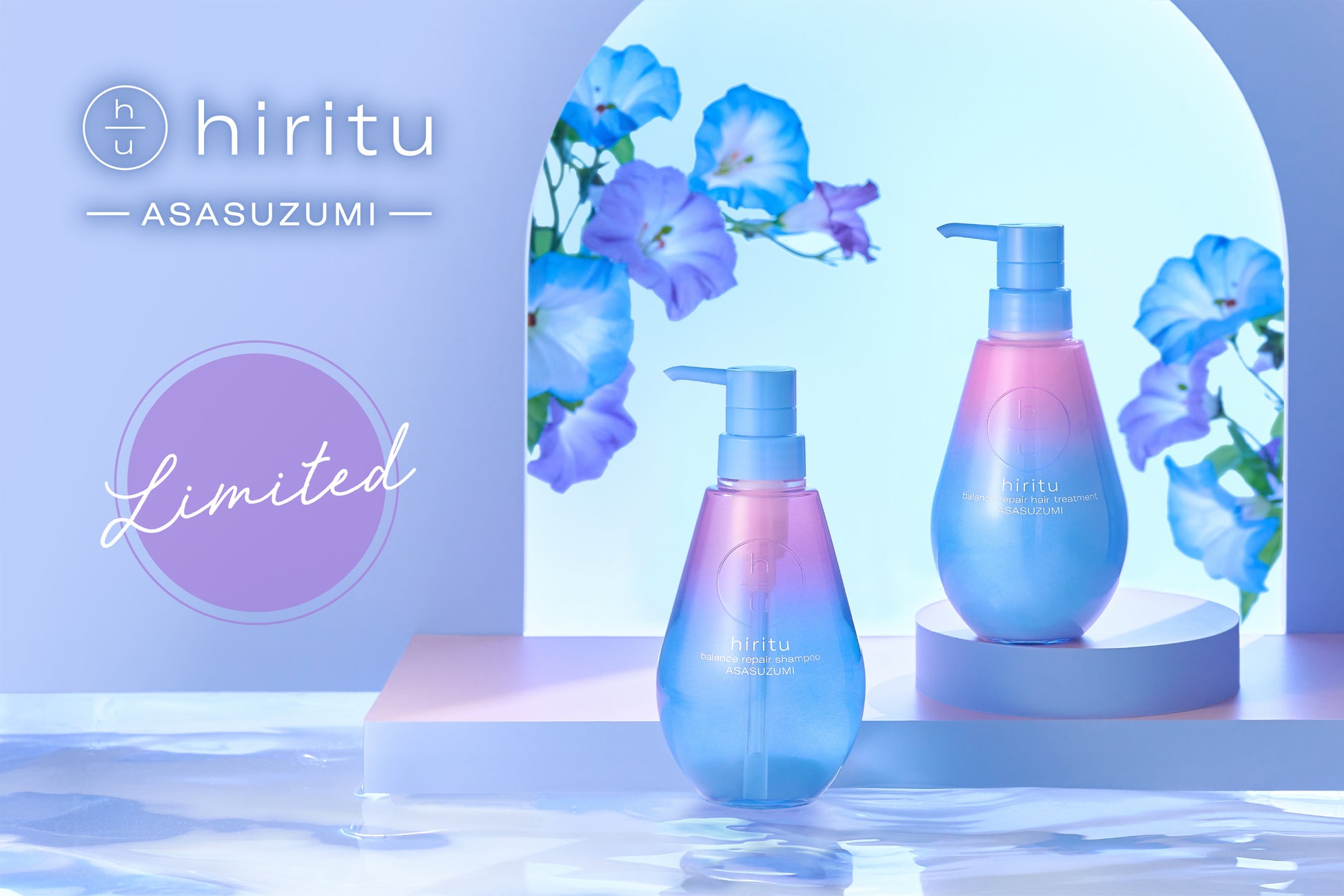 「hiritu」は、美しい髪の黄金比率※1【たんぱく質80%・水分15%・油分5%】に着目。限定のアサスズミシリーズは、「うねりセンサーセラム※2」+「モーニングカーム成分※3」を配合し、湿気によるうねりや寝ぐせ、就寝中のダメージから髪を守り、目覚めてすぐサラサラ髪へと導きます。香りは、さわやかな朝を思わせる「ライラック&リーフィグリーン」を採用。アサガオをイメージした、みずみずしくフレッシュで上品な香りをお楽しみください。