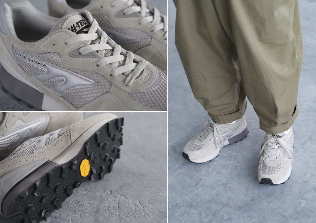 数あるシルバーシャドウシリーズの中でも根強い人気があった「SILVER SHADOW II」を復刻。廃番となっていたモデルをベースに、当時のボリュームシルエットなどデザインを忠実に再現。アウトソールには優れたグリップ性能を持つVibram®「MEGA GRIP 」を搭載しアップグレードしています。