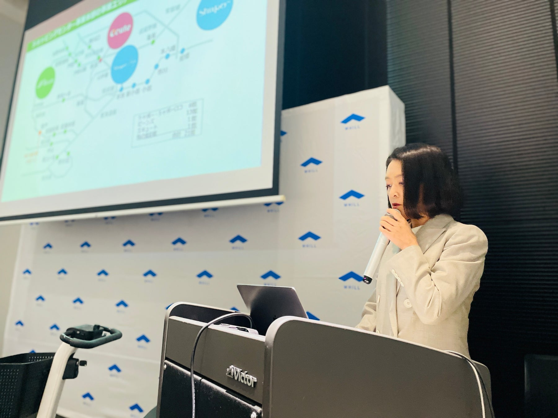 株式会社ジェイアール東日本都市開発 ショッピングセンター事業部 営業部(企画部兼務)次長 増田恵美氏より、同社が運営する商業施設「シャポー市川」(千葉県市川市)で、施設周辺にお住まいの高齢のお客様向けに有人・無人の両方でWHILLモビリティサービスを提供した実証実験についてご説明いただきました。買い物時に活用する小型モビリティの提供を検討する上で、「将来的な労働力不足を見据え、省人化が期待できることと、お客様から人と接しないことを望む声も増えてきており、ストレスない形でウィルをレンタルしてもらいたかった」と話し、無人での貸出を取り入れた背景を説明しました。