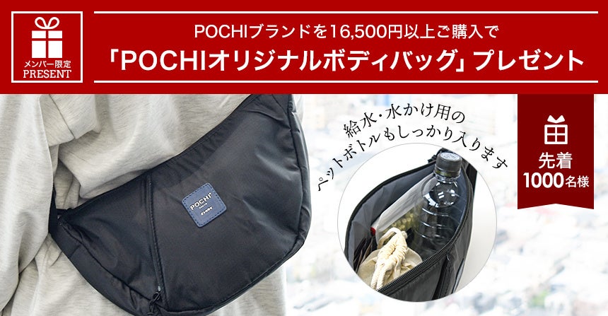 期間中、POCHIブランド16,500円以上お買い上げの方へ、毎日のお散歩に使えるショルダーバッグをプレゼントいたします。