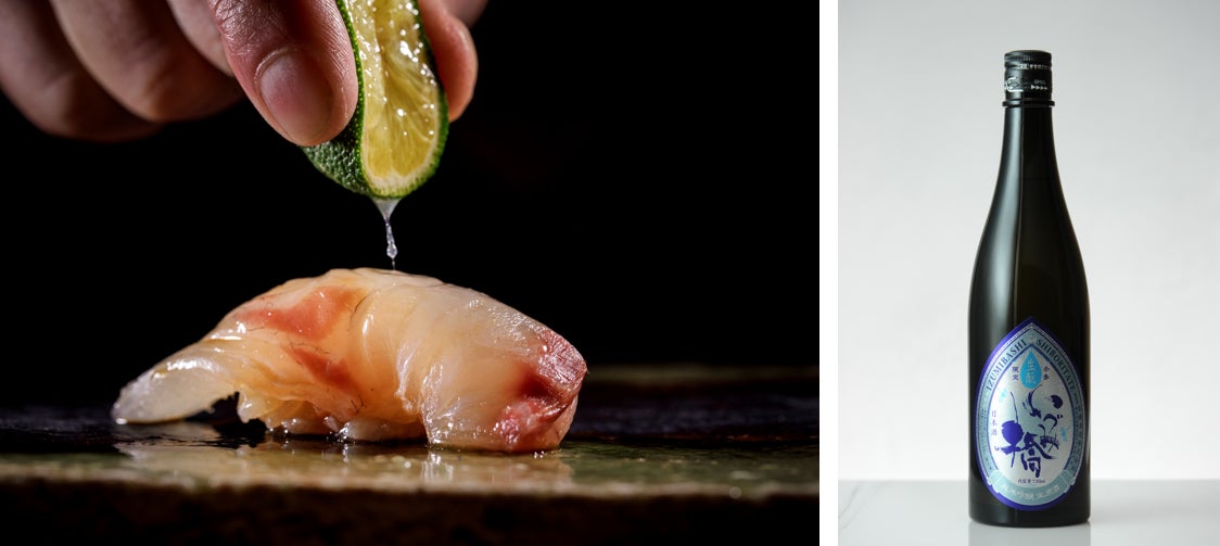 第二回目となる今回は、全国でも珍しい栽培醸造蔵®として酒米の栽培から醸造を一貫して行い、米の無農薬栽培や、酒造りの副産物も飼料に変えて原材料を余すことなく使い切るなど、自然と共存し、環境に配慮したものづくりをする泉橋酒造とのコラボレーション。フランスのKura Masterゴールド賞を獲得した「いづみ橋 恵 純米吟醸」や、インターナショナル・ワイン・チャレンジのSAKE部門で受賞歴のある「いづみ橋生酛仕込 特撰純米大吟醸」など、世界のコンクールで認められた代表的な銘柄を含む7種類の日本酒と、それにあわせる鮨・料理をご用意します。また、同酒造の酒米を使用した米粉のフリットや、梅酒や甘酒を使用したソースを取り入れるなど、料理を含めたコース全体で泉橋酒造を感じられる仕立てとなっています。当日は副杜氏である寺田昌登氏を招き、酒造りや米作りへのこだわりを聞きながら食事を楽しんでいただけます。
