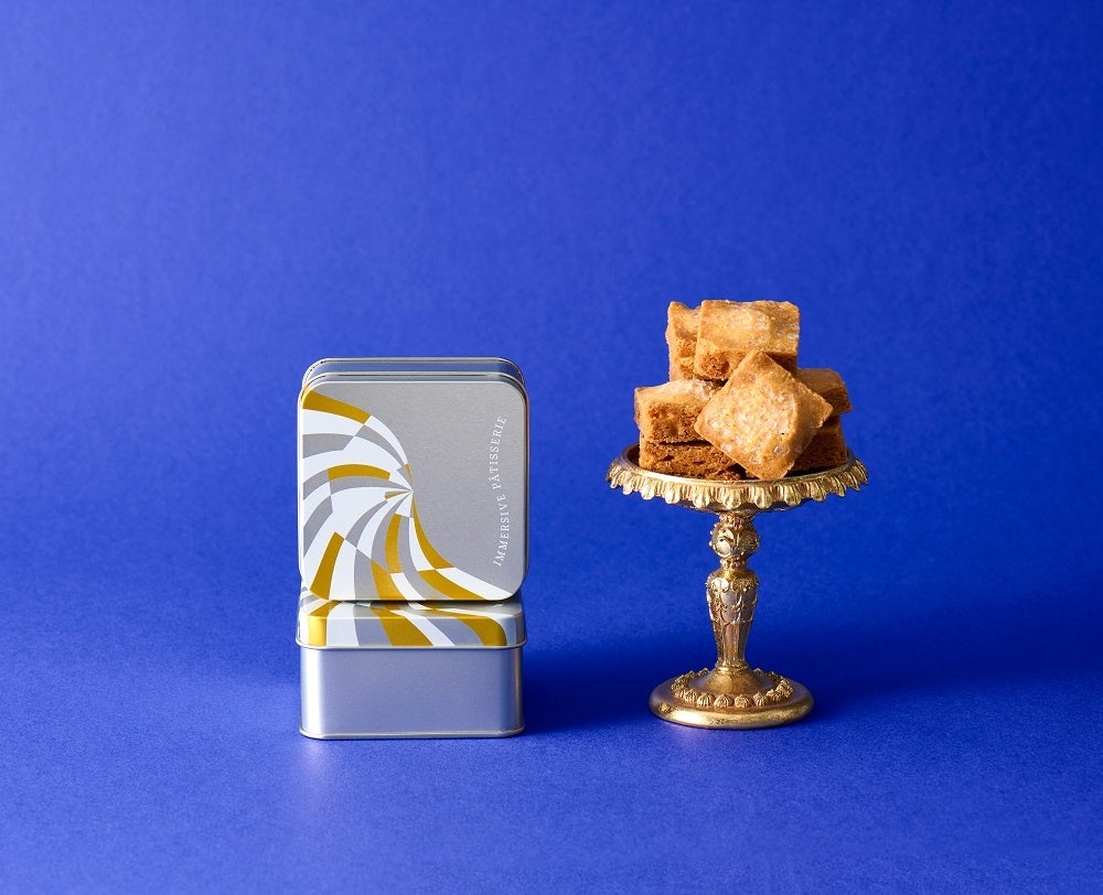 をテーマにオープンしたデジタル上での展開をメインとするブランドです。お菓子は架空の“マンション・インディゴ”の個性豊かな住人やその仲間たちをモチーフにした、クッキー缶やパウンドケーキといった焼き菓子を中心にラインナップ。美味しさはもちろんのこと、開けた時の驚きや、食べ進めていくワクワク感を感じてもらえるような商品に設計にしました。お菓子は職人が時間をかけて手作りをする工程を大切にし、オートマティックな工場生産では成し得ないシェイプや柄を配し、他にはないアートなお菓子を作り上げています。また、ベースとなる小麦粉とバターは北海道産のもの