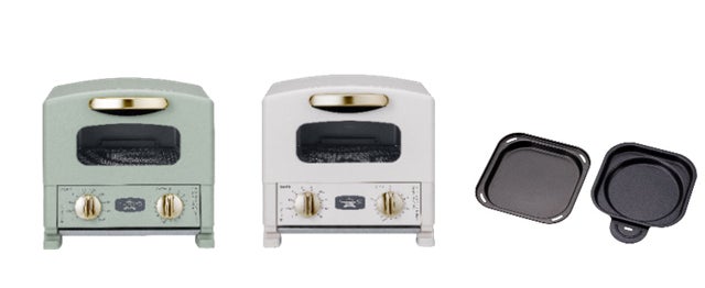 また、デザインにもアラジンらしいこだわりを凝縮。背面にはブランドの象徴「ランプマーク」を施し、360度どこから見ても美しい佇まいに仕上げました。つまみ部分は、上質感のあるゴールドとシルバーの2タイプで展開。品番「CAT-G8A」にはミニグリルパンとレシピブックが付属し、トースト以外の調理にも対応可能です。品番「AET-G8A」にはトレイのみが付属し、よりシンプルな仕様となっています。