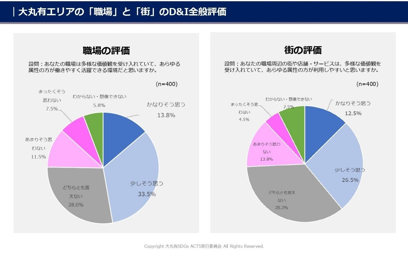 大丸有SDGs ACT5では、本調査結果を受けて、誰もが違いを受け入れ、働きやすい街の実現を目指し、様々なアクションをより一層展開してまいります。