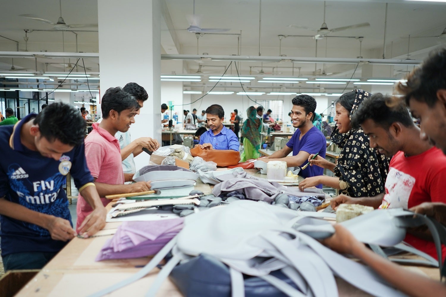 2008年に設立したマザーハウスの自社工場。所在地はバングラデシュの首都ダッカ郊外。バングラデシュが誇るジュート(黄麻)、レザー(皮革)のバッグ・革小物を生産。スタッフ4名からスタートし、現在は約330名が勤務している。