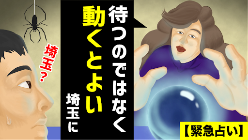 占い師のところにやってきた都内在住の男性。占い師の水晶玉には運命線ならぬ埼玉県内の鉄道路線図が浮かびあがってきます。交通の便の良さだけでなく、良好な住環境、歴史を感じる街並み、自然に囲まれたレジャー施設など埼玉の良さを猛アピールしつつ、占い師は埼玉移住を勧めてきますが…