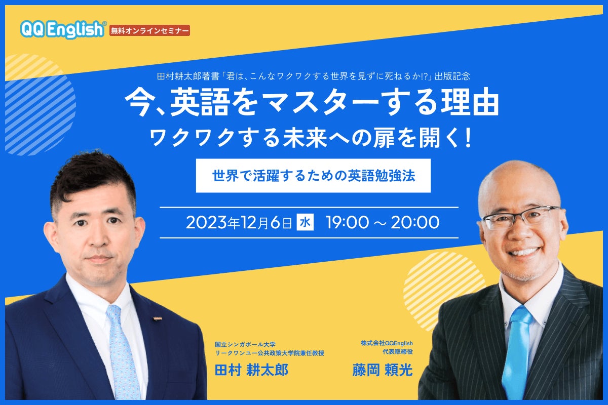 【オンライン無料セミナー】田村耕太郎×藤岡頼光 対談セミナー「今、英語をマスターする理由 ワクワクする未来への扉を開く!」12月6日(水)19時より開催
