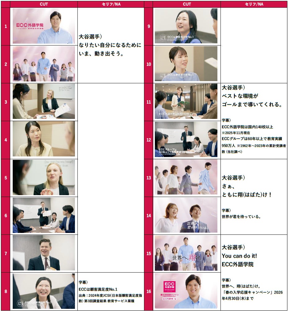 ■新CM『ECC外語学院 生徒募集 大谷翔平選手/ともに進もう篇』(30秒) ストーリーボード