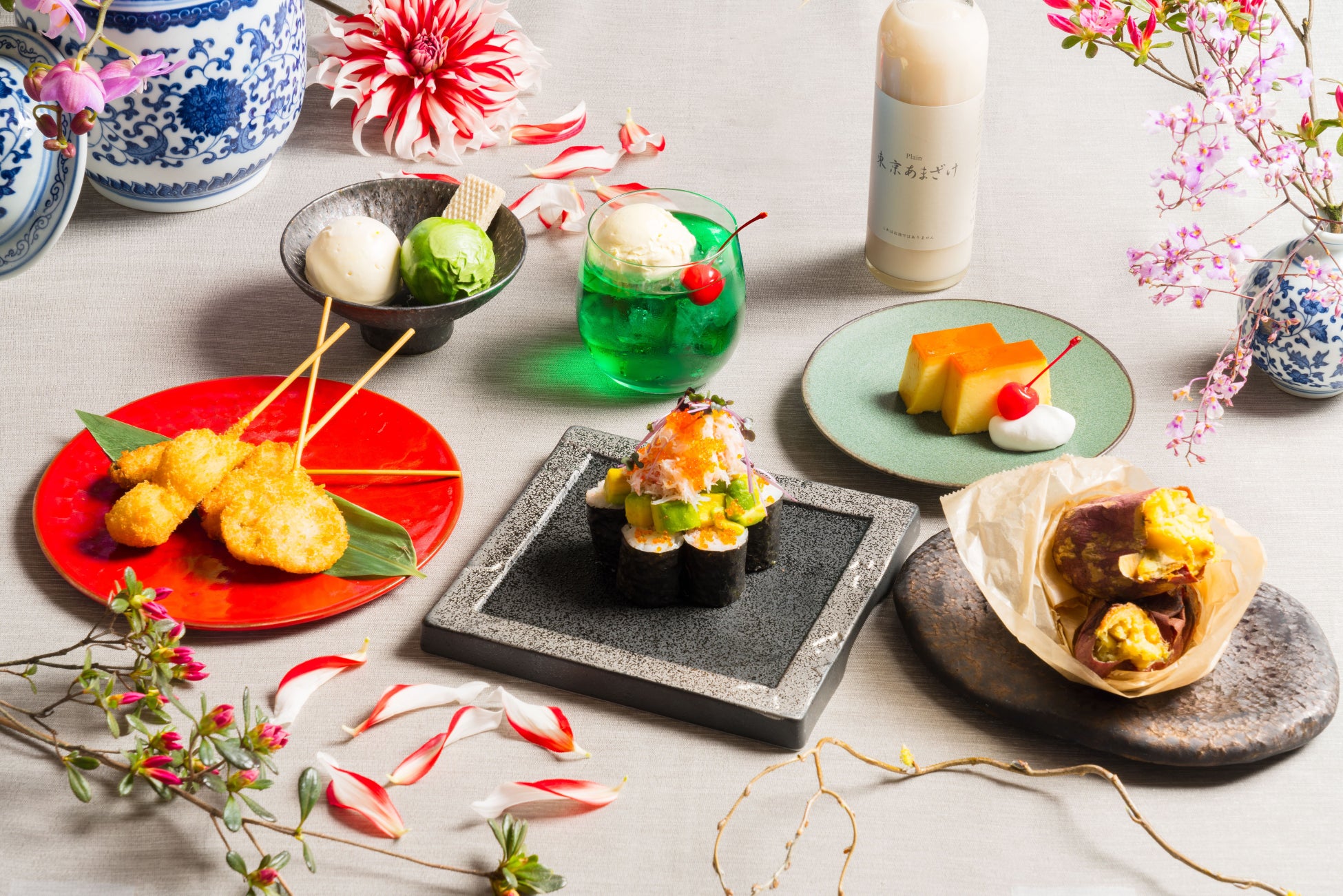 江戸、明治・大正、現代と三つの時代の美食を愉しめる、4日間限定のダイニング。夜会オリジナルのビールのほか、江戸庶民に流行した甘酒、レトロなクリームソーダやラムネなど、その時代ごとの雰囲気を味わえる飲食をご用意します。