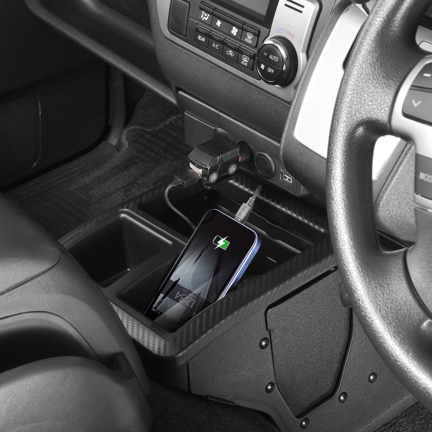 純正のカーソケットだけでなく、当社ハイエース用増設電源ユニット (NZ586) にも使うことができます。また、ドリンクテーブル(NZ593)やコンソールボックス(NZ594)とも併用可能です。