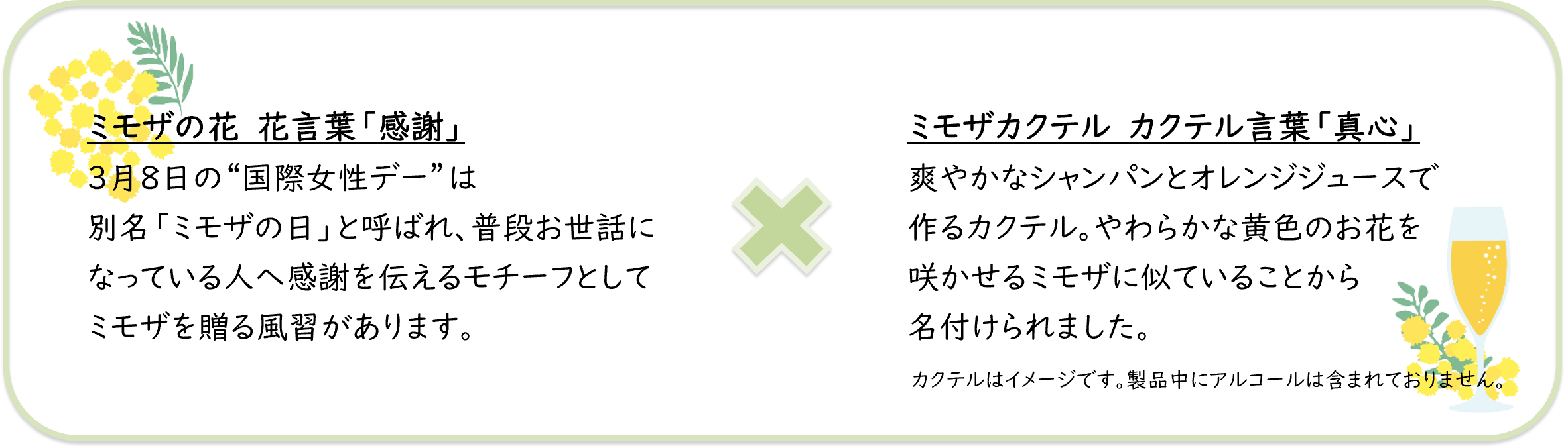 “お肌が喜ぶキラキラギフト”をテーマに、“感謝”の花言葉を持つミモザのお花と、“真心”のカクテル言葉を持つミモザのカクテルをモチーフにした『プレミアムルルルン ミモザ(ミモザスパークルの香り)』が誕生。