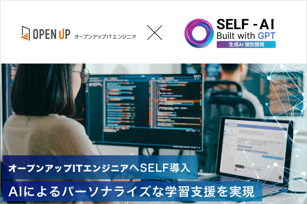 SELF株式会社(本社:東京都新宿区、代表取締役:生見臣司、以下「SELF」)は、株式会社オープンアップITエンジニア(本社:東京都千代田区、代表取締役:中島 淳二、以下「オープンアップITエンジニア」)の独自学習管理システム(以下「LMS」)において利用者の学習サポートを目的として、SELFのコミュニケーションAI(以下「SELF-AI」)が本格導入されたことをお知らせいたします。