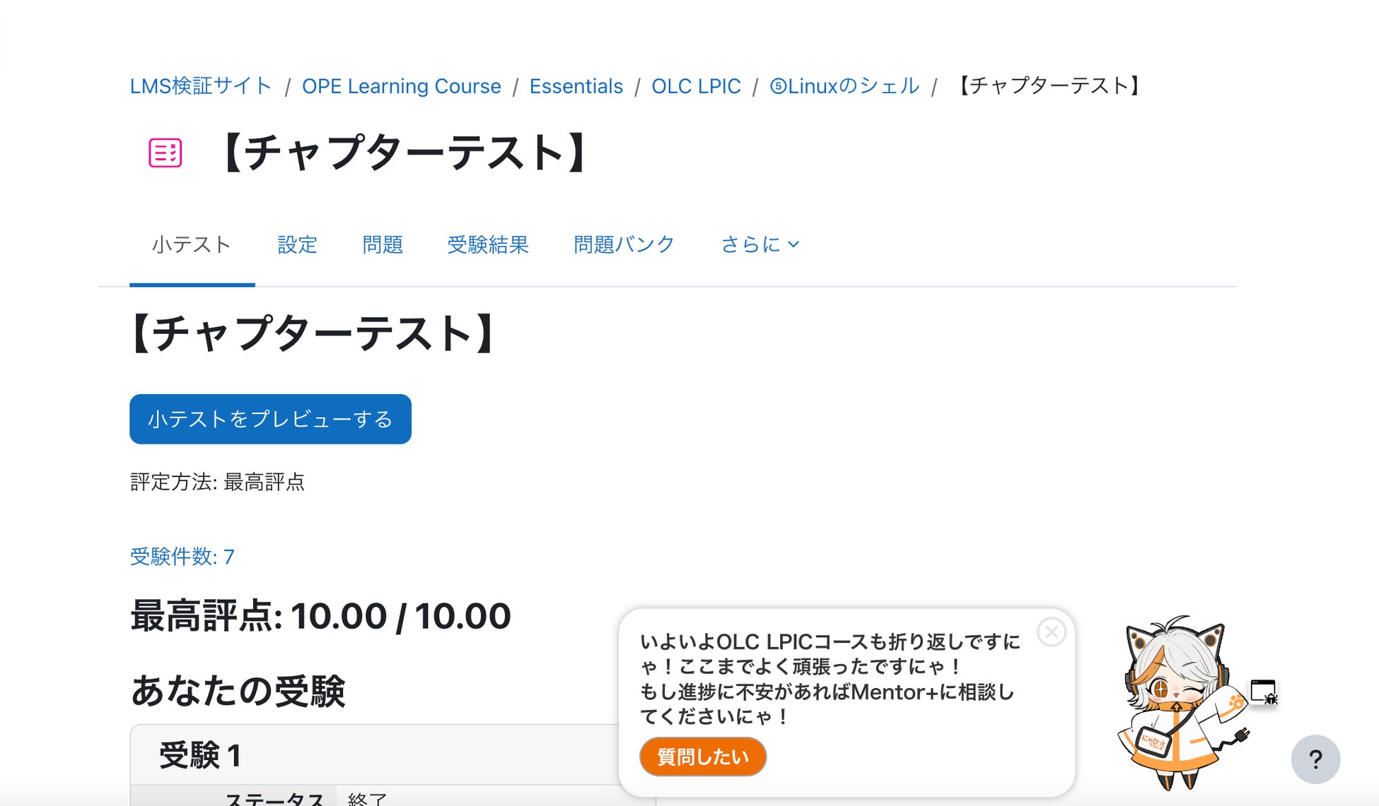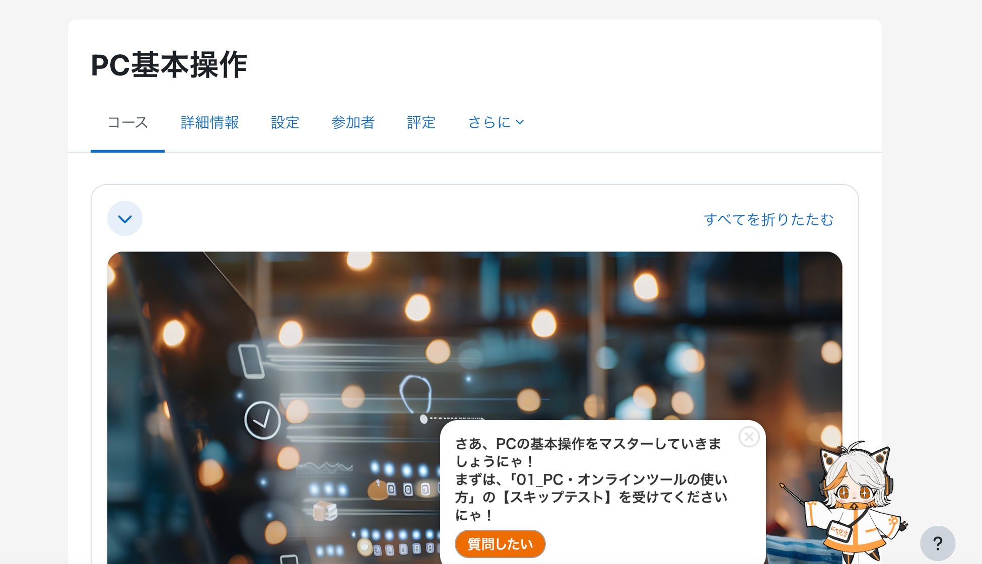SELF-AIは、LMS内の学習を進めるにあたって「次に何をすべきか」わからなくなるユーザーをサポートし、学習効果の向上に繋げます。サポートを行うアバターはオープンアップITエンジニアの公式キャラクターである「にゃびっとちゃん」を活用しています。