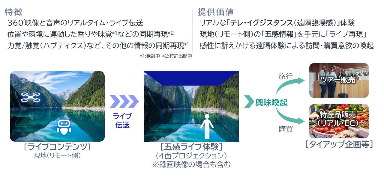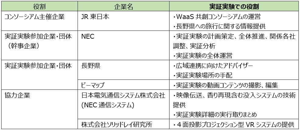 〇東日本旅客鉄道株式会社(代表取締役社長:喜㔟 陽一、以下「JR東日本」)、日本電気株式会社(取締役 代表執行役社長:森田 隆之、以下「NEC」)、長野県(県知事:阿部 守一)、株式会社ビーマップ(代表取締役社長:杉野 文則、以下「ビーマップ」)は、信州首都圏総合活動拠点(以下、「銀座NAGANO」*1)において、現地で感じられる感覚を遠隔地で体感できる新しいバーチャル技術(以下、「没入システム」)による遠隔観光体験が、UX*2と行動変容にどう影響するかを検証する実証実験(以下、「本実証」)を行います。