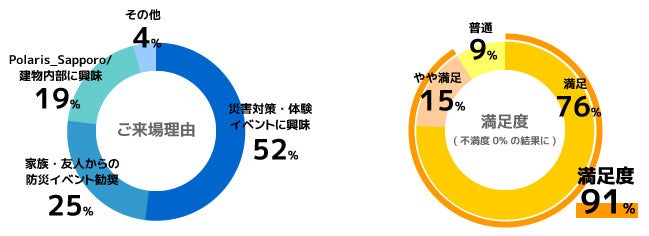 また、会場で実施したアンケート※2では、来場理由について「防災・災害対策に関心」「知人・友人から防災イベントを勧められた」と答えた方が全体の77%となり、「日頃から防災知識・情報を得る機会を探していた」というコメントが多数ありました。満足度は90%以上、全員が次回参加を希望いただく結果となり、有意義な時間を過ごしていただいたものと考えております。