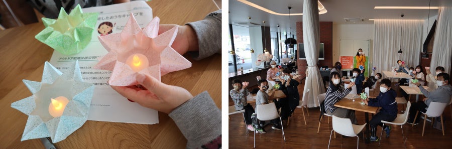 親子で参加、災害時に役立つ「ランタン工作」 / 停電時に利用できるスマホ充電ブース体験