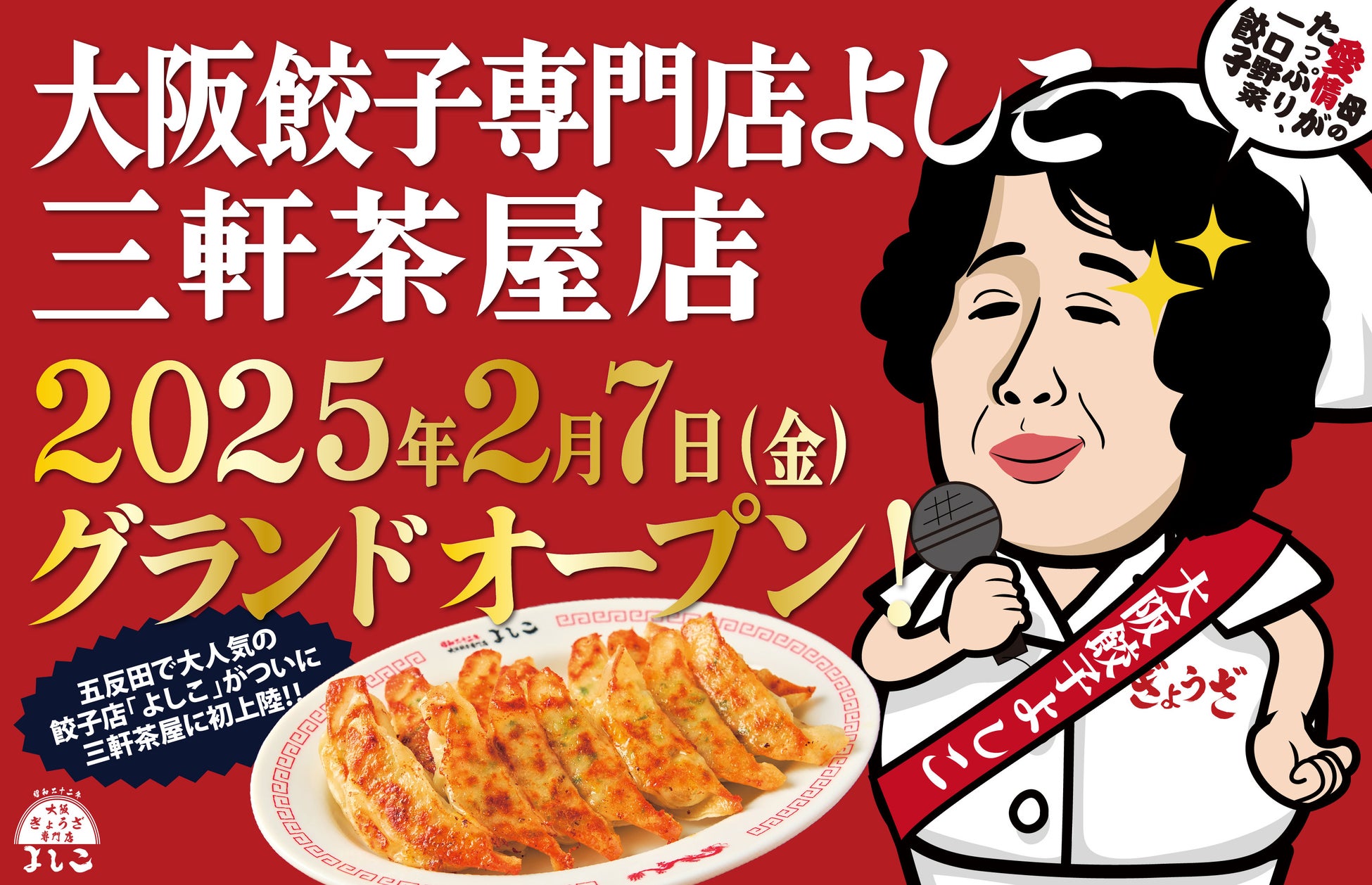 「大阪焼肉・ホルモン ふたご」「GREEN BROTHERS」など6ブランド125店舗を世界展開する株式会社FTG Company(本社:東京都目黒区、代表取締役社長:李 純哲)は、2021年2月「大阪餃子専門店よしこ」(https://gyoza-yoshiko.com)を五反田に1号店をオープンしました。この度、5店舗目として東京・三軒茶屋に2025年2月7日(金)グランドオープンします。