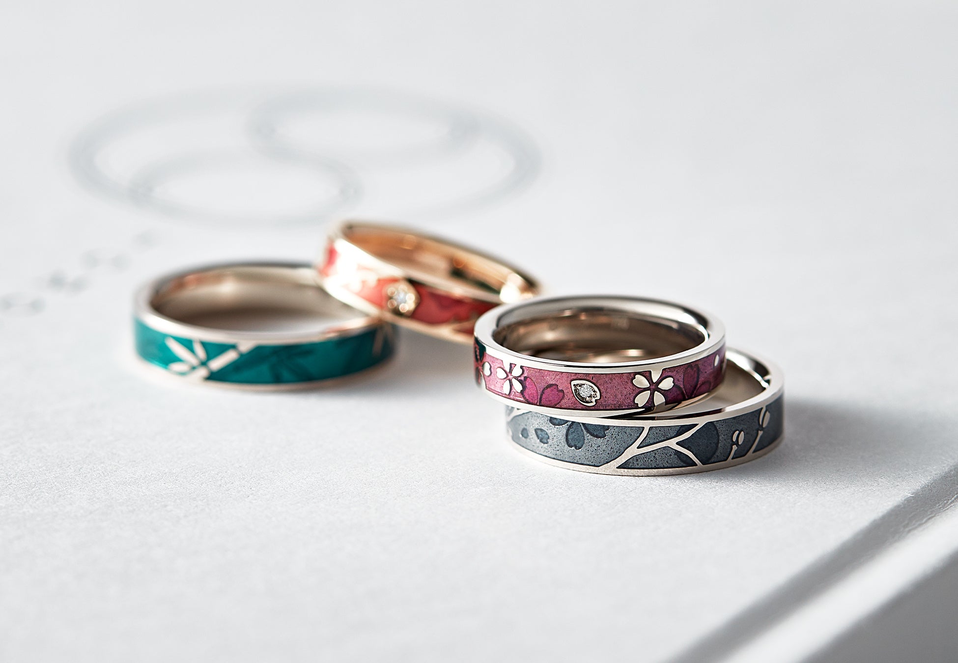 七宝焼きや和彫り、象嵌など、江戸の伝統工芸職人から今に受け継がれている技術を用いた、唯一無二のリングが揃います。