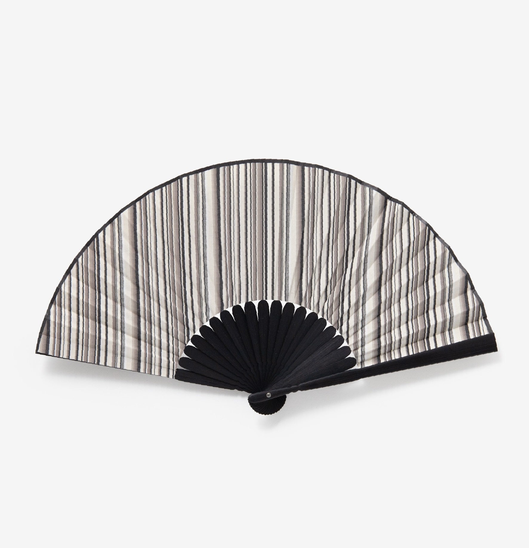 小倉織の丈夫でしなやかな生地を使用した縞縞の扇子。立体感あふれる小倉織の扇子は男女問わずお使