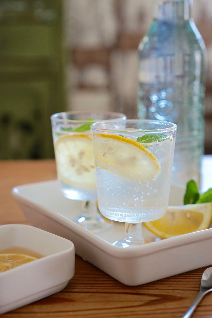 レモンと一緒に炭酸水に加えて、爽やかなハニーレモンスカッシュにアレンジ