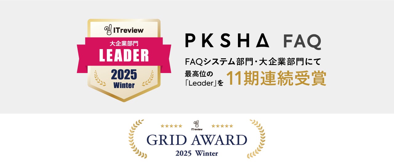「PKSHA FAQ」が「ITreview Grid Award 2025 Winter」のFAQシステム部門・大企業部門にて最高位の「Leader」を11期連続受賞