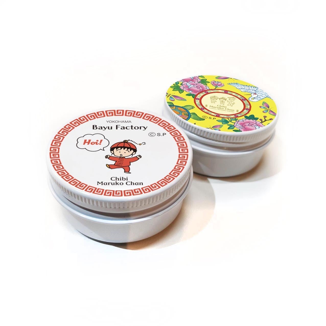 ちびまる子ちゃんデザインで保湿抜群の手・顔・髪・唇など全身に使える香りにこだわった馬油のバームです。