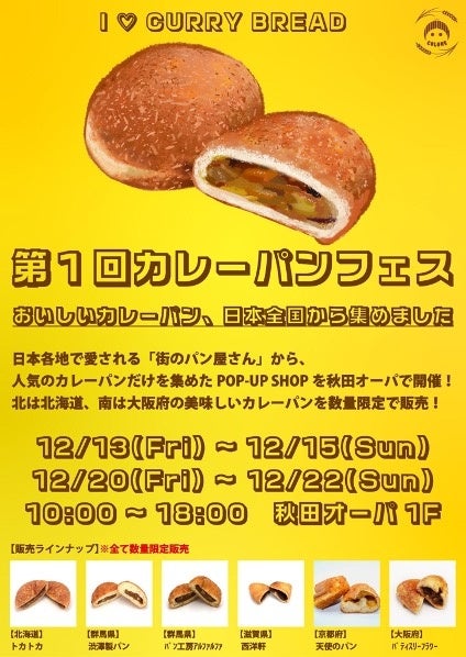 地域のパン屋さんと消費者をつなぐプラットフォームを構築する株式会社パンフォーユー(本社:群馬県桐生市、代表取締役:矢野 健太、以下パンフォーユー)は、このたび秋田県秋田市の商業施設「秋田オーパ」にて開催中の特別イベントに協力し、全国のパン屋さんの人気カレーパンを供給しています。