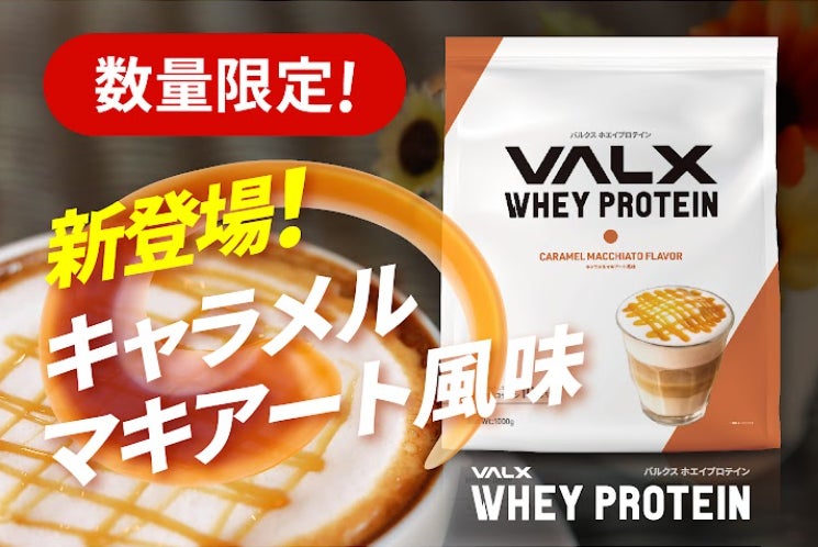 『VALX ホエイプロテイン』から数量限定の新フレーバーキャラメルマキアート風味が2 月 25日(金)に新発売です。