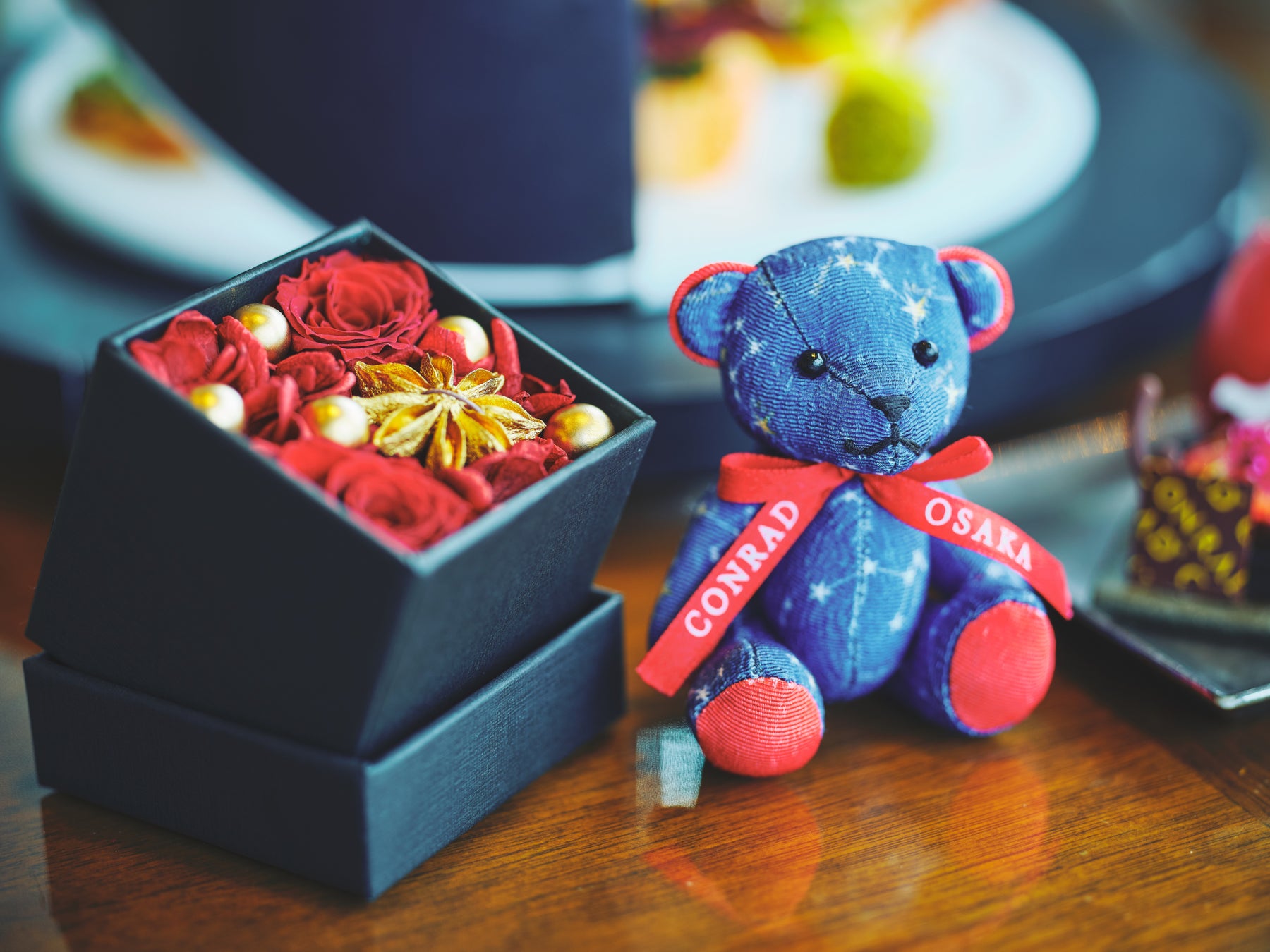 コンラッド大阪ロゴ入り プリザーブドフラワーボックス、ホリデーベア付きプラン(数量限定)