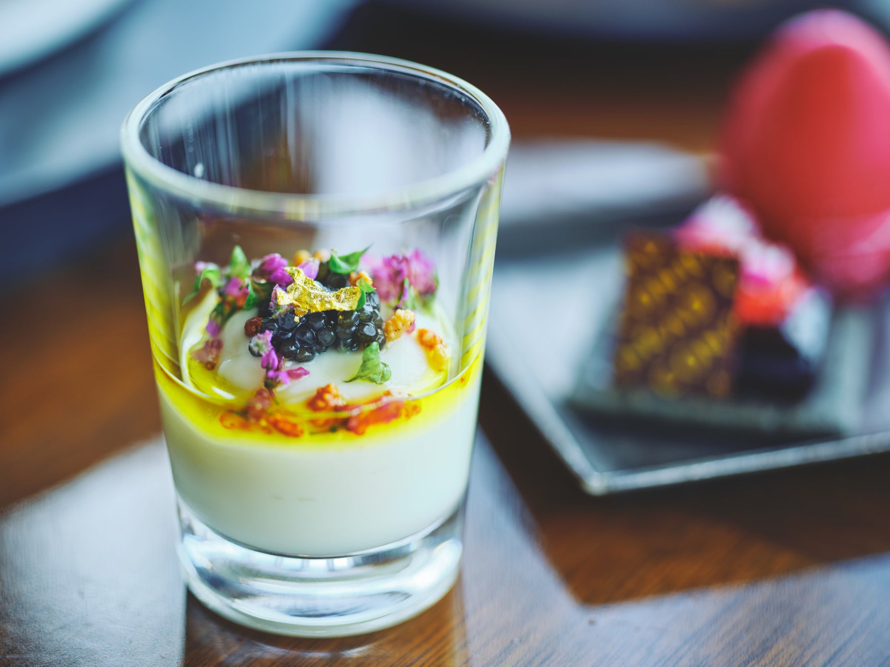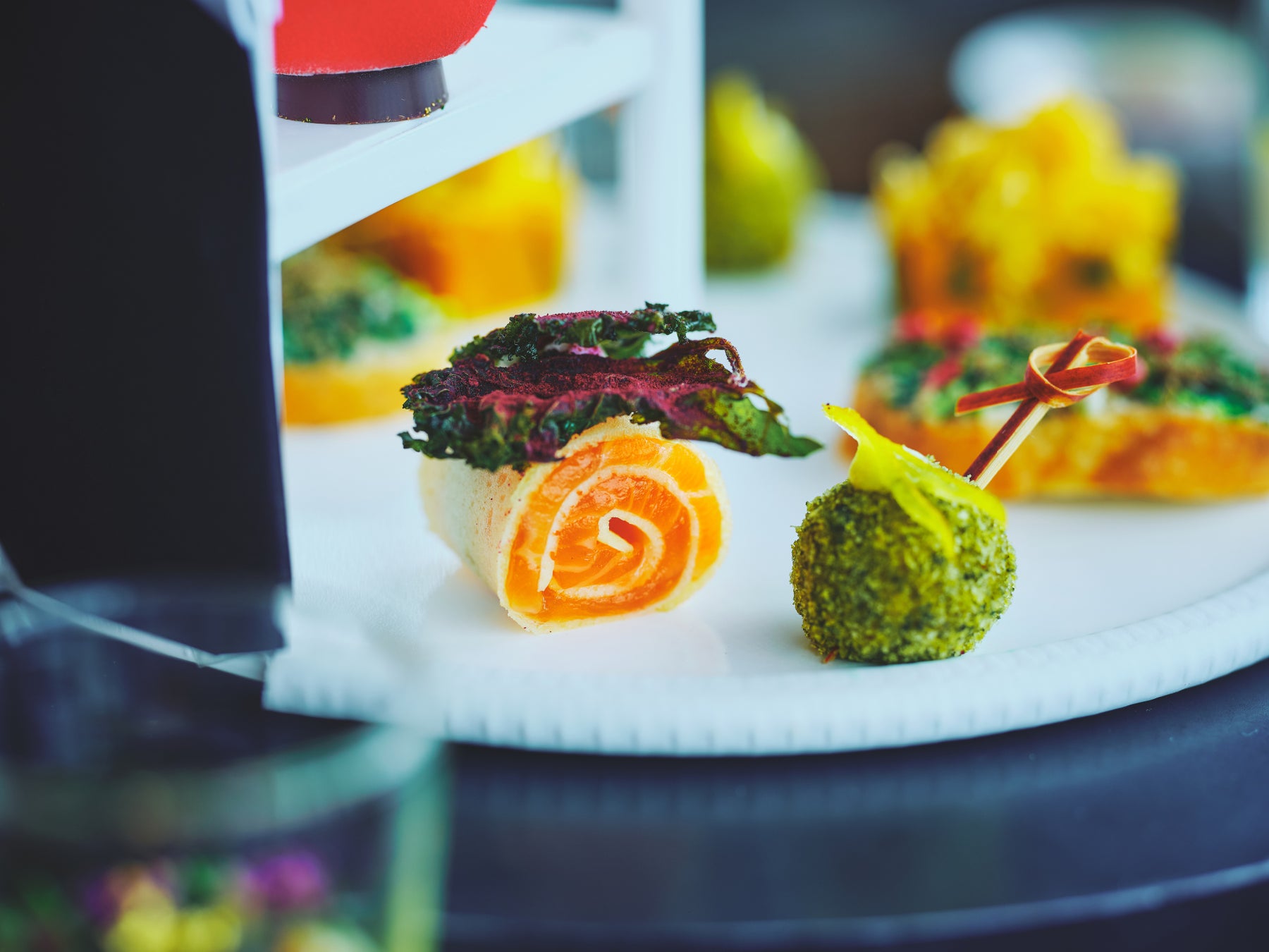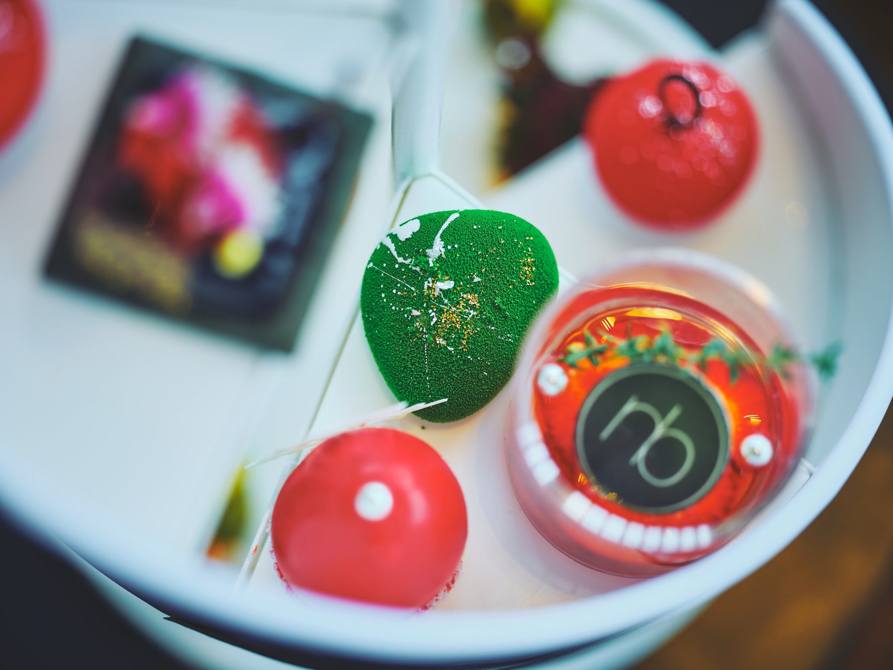 セイボリーには、ズワイガニをピスタチオで包み、苔玉の質感を表した「ズワイガニとポルチーニクリーム」、カボチャとサワークリームに、花びら仕立てのミモレットが華やかな「パンプキンプレッセ」、北欧の冬に咲く花をイメージし、サーモンにビーツとケールで香りづけた「サステナブルサーモンクレープ」、カリフラワームースやキャビアを使い、冬の静寂に咲く一輪の花のようにグラスに飾った「アキテーヌ産キャビア」、そしてサンドイッチには、森の香りが漂うトリュフと、鴨肉、リコッタチーズを飾った「トリュフオーブンサンドイッチ」をご用意。1つ1つがニコライ バーグマンの世界観を映したフラワーアレンジメント仕立てのセイボリーです。