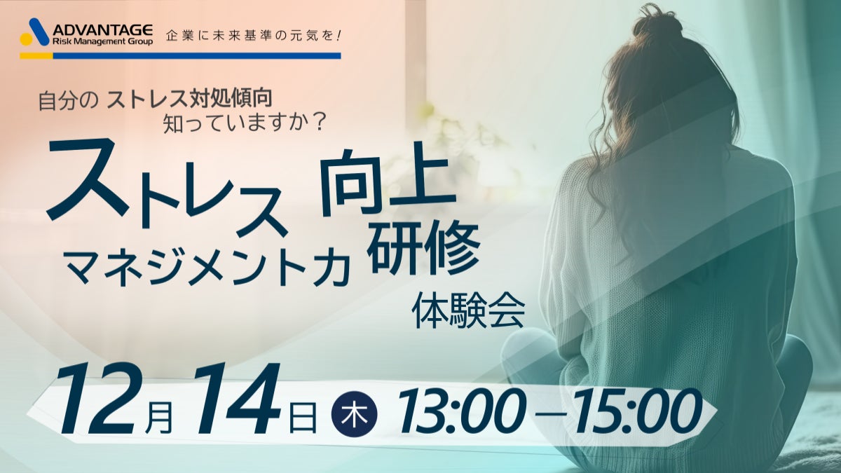 【12月14日(木)開催決定 】自分のストレス対処傾向知っていますか?『ストレスマネジメント力向上研修』体験会