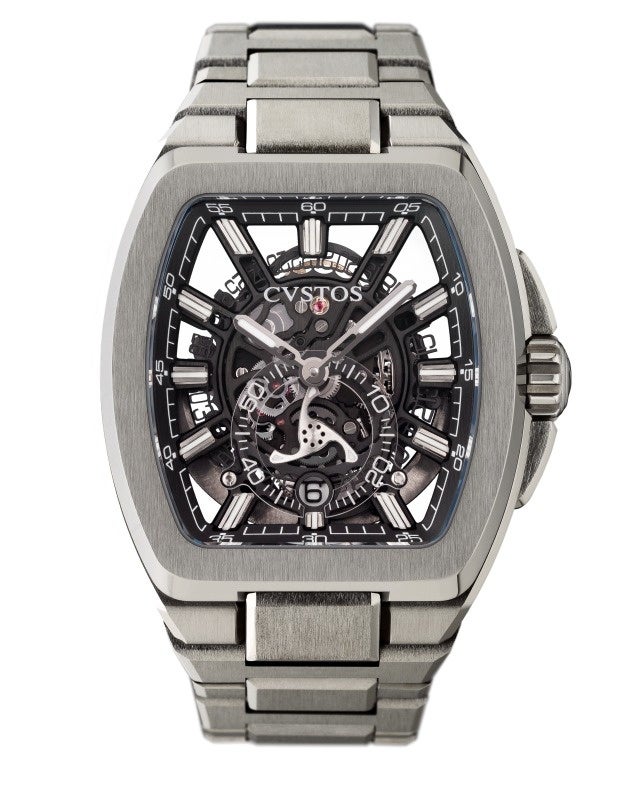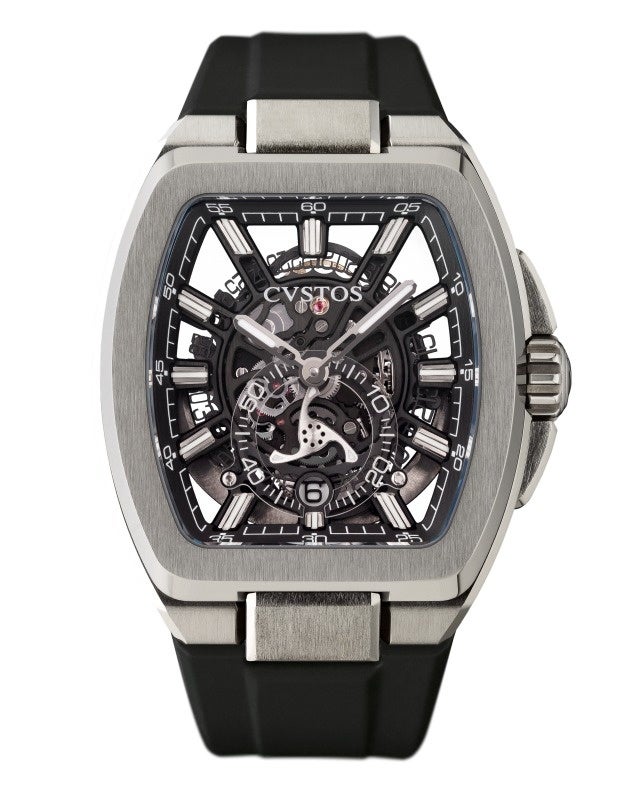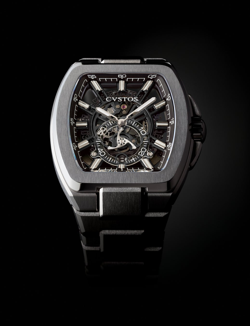 スイスの高級機械式腕時計ブランドCVSTOS<クストス>より、 “洗練された都会”をテーマに制作された「メトロポリタン P-S スケルトン」にブラックカラーが登場します。メタルブラックに彩られた文字盤のスケルトンパーツは光をとらえるごとに異なるニュアンスを見せ、さまざまな表情を持つ夜の都市を思わせます。その奥では、極限までスケルトン化した自動巻き式ムーブメントを眺めることができます。存在感のあるバーインデックス、針、スモールセコンドには夜光塗料が施されており、暗闇での視認性も考えられています。世界中の都市に溶け込む高いデザイン性にブラックトーンが生み出す強い個性が調和し、「メトロポリタン P-S スケルトン」のスタイリッシュさをより引き立てています。