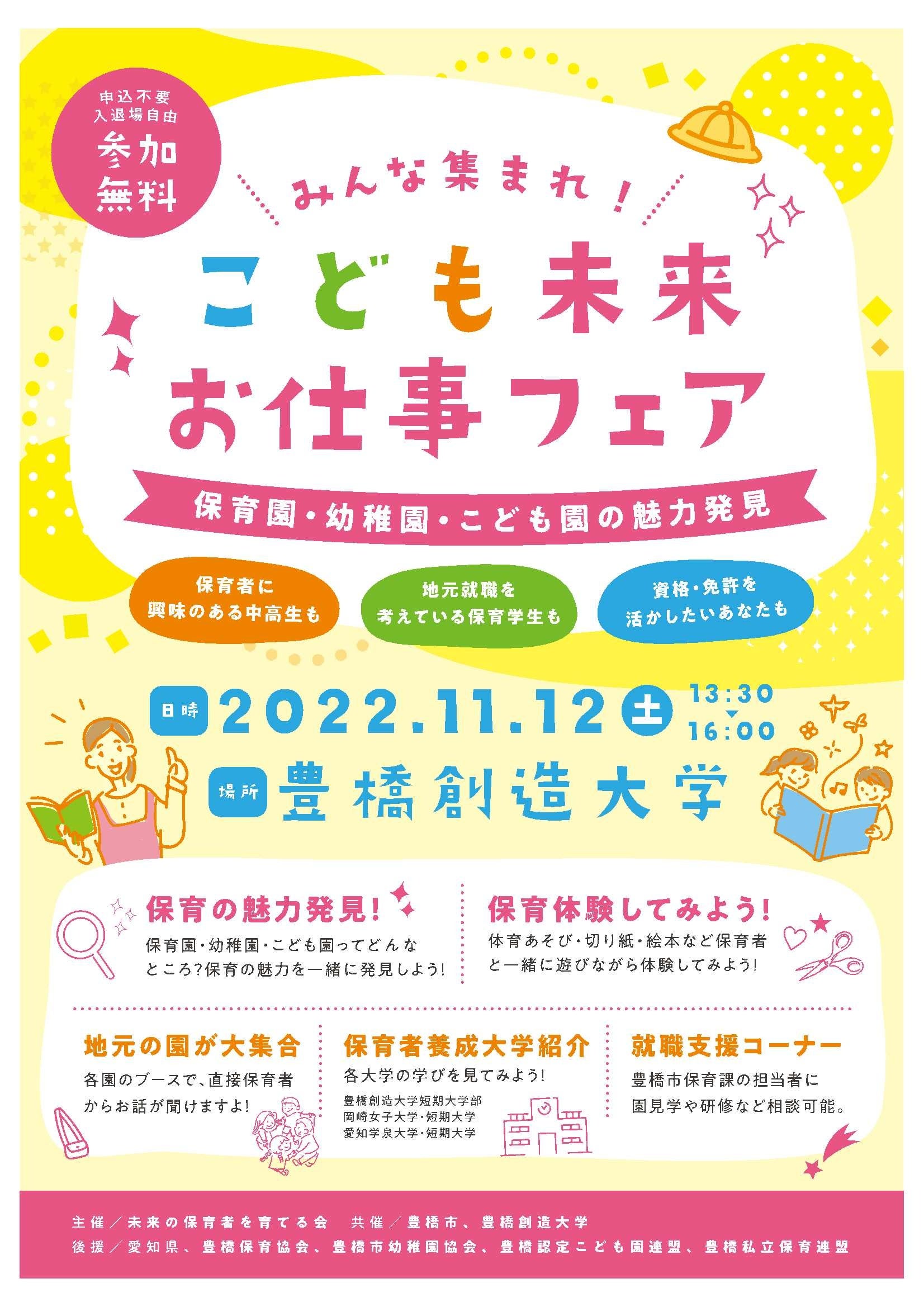 保育者になりたい人、子ども好きな人集まれ!豊橋市初「こども未来お仕事フェア」を11/12に開催